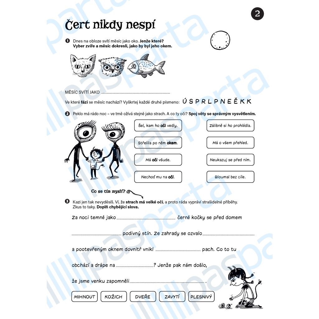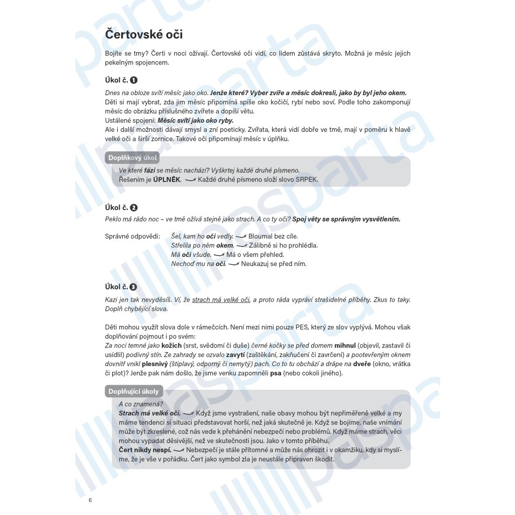 Publikace obsahuje 30 kopírovatelných pracovních listů nejen s čertovskými frazémy. Rčení, přirovnání, pořekadla i rozpočítávadla jsou ukryta v rozmanitých úkolech, které hravou formou rozvíjejí slovní zásobu dětí mladšího školního věku a ukazují krásu a bohatství češtiny.