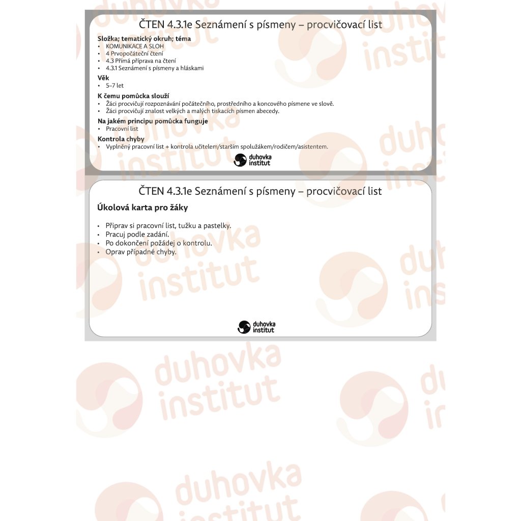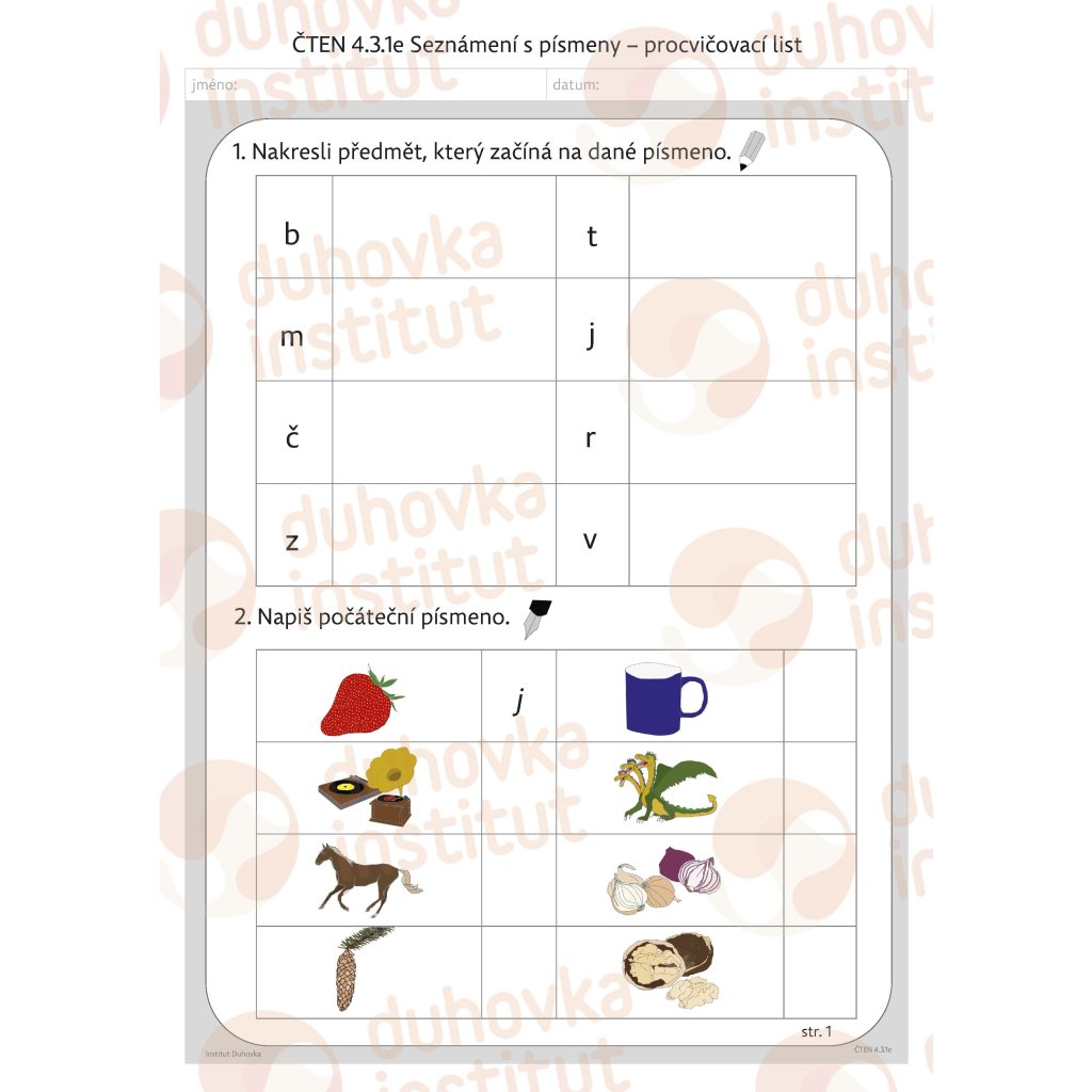 ČTEN 4.3.1e Seznámení s písmeny – procvičovací list