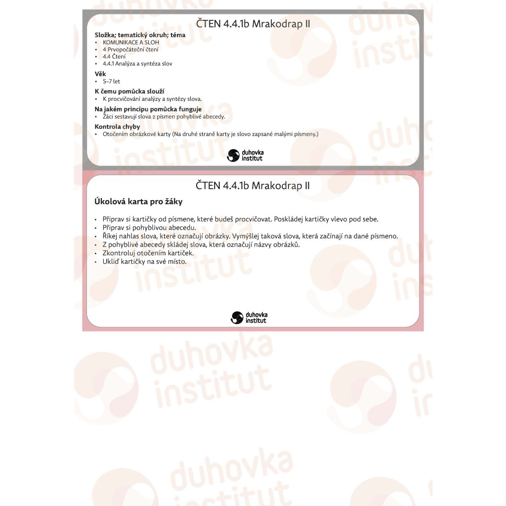 Listy byly vytvořeny Institutem Duhovka. Více najdete na https://www.montessori-trainings.com/duhovka-institut