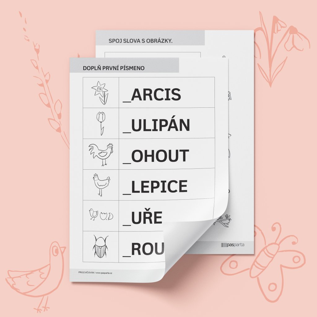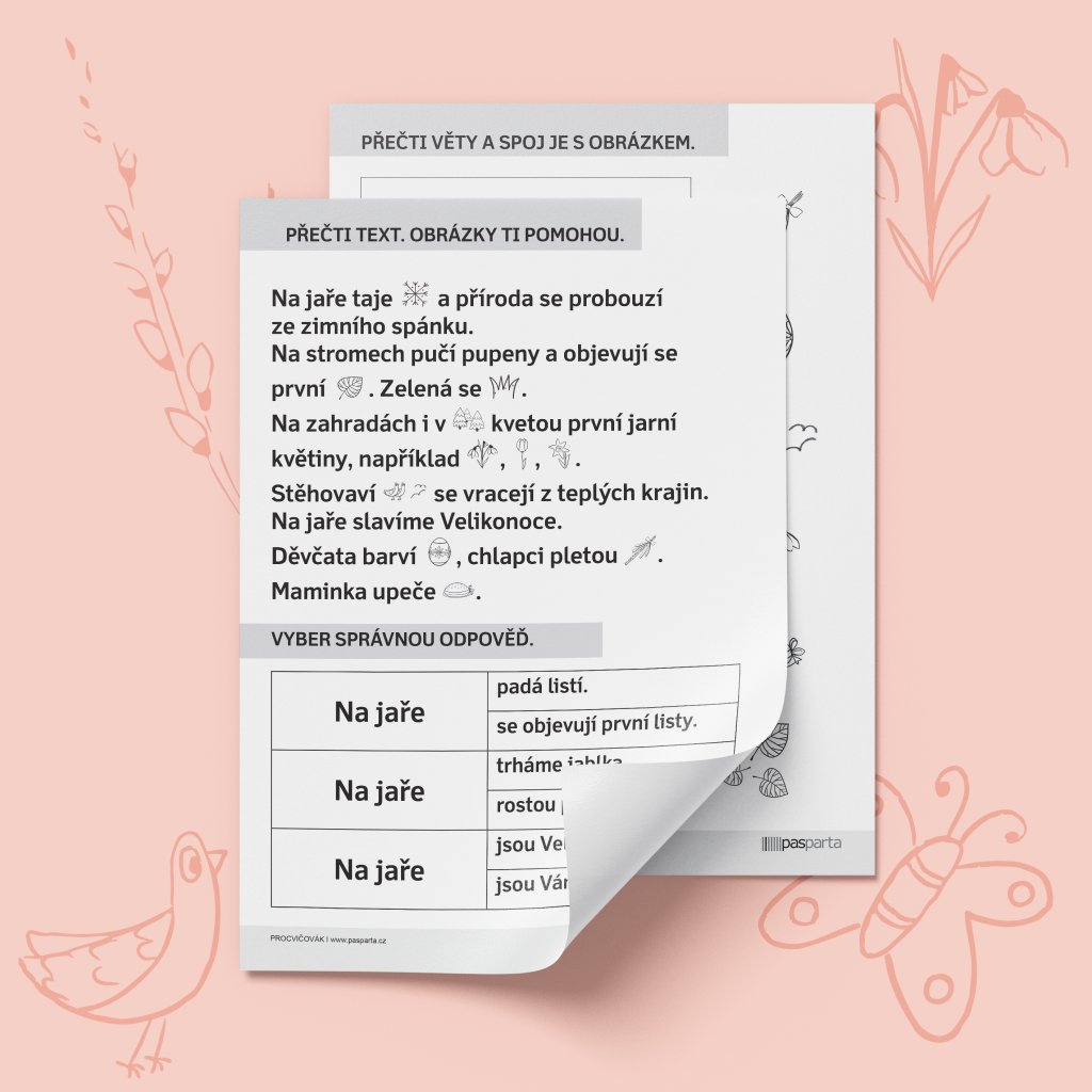 Cílem pracovních listů je naučit děti číst, psát, správně vyslovovat a porozumět krátkým textům týkajících se ročního období jara.