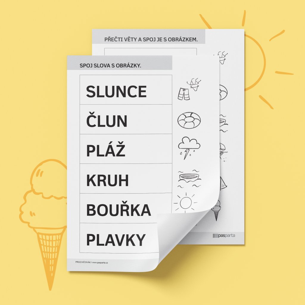 Cílem pracovních listů je naučit děti číst, psát, správně vyslovovat a porozumět krátkým textům týkajících se ročního období léta.