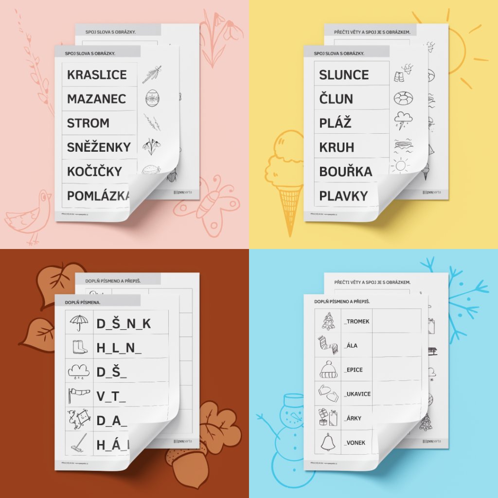 Cílem pracovních listů je naučit děti číst, psát, správně vyslovovat a porozumět krátkým textům týkajících se jednotlivých ročních období.