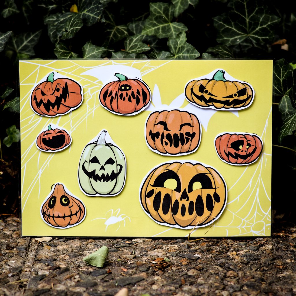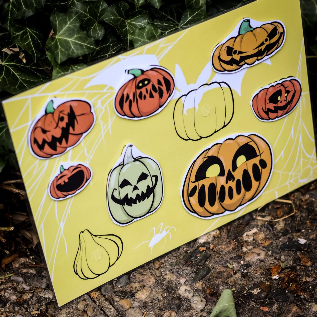 Součástí jsou prvky na suchý zip – dýně v několika velikostech – které lze snadno přemisťovat a opakovaně používat.