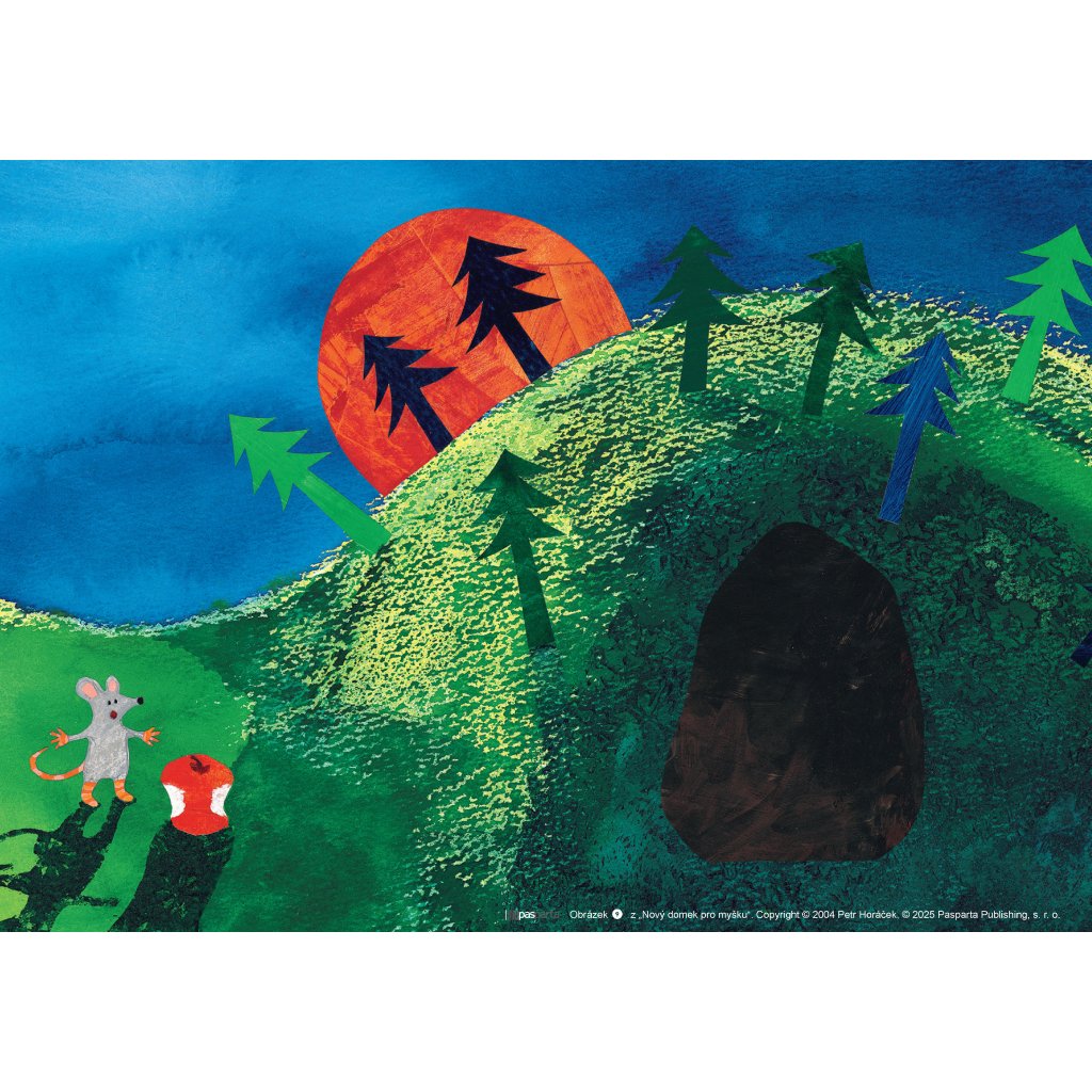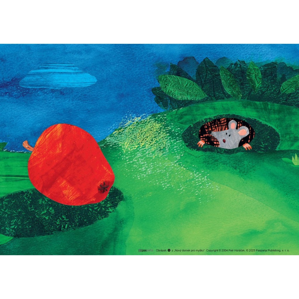 Jak může myška dostat velké jablko do svého malinkého obydlí? Nezbude jí nic jiného než si najít jiné, o něco větší bydlení. Všechny domečky, které cestou potká, ale už mají svého nájemníka. Jak její putování za novým domkem dopadne?