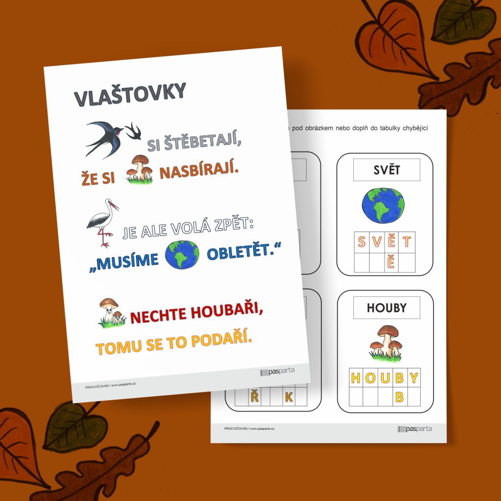 Materiál obsahuje 3 říkadla k zapamatování nebo čtení: Barvy podzimu, Vlaštovky a Pamlsky pro divočáka.