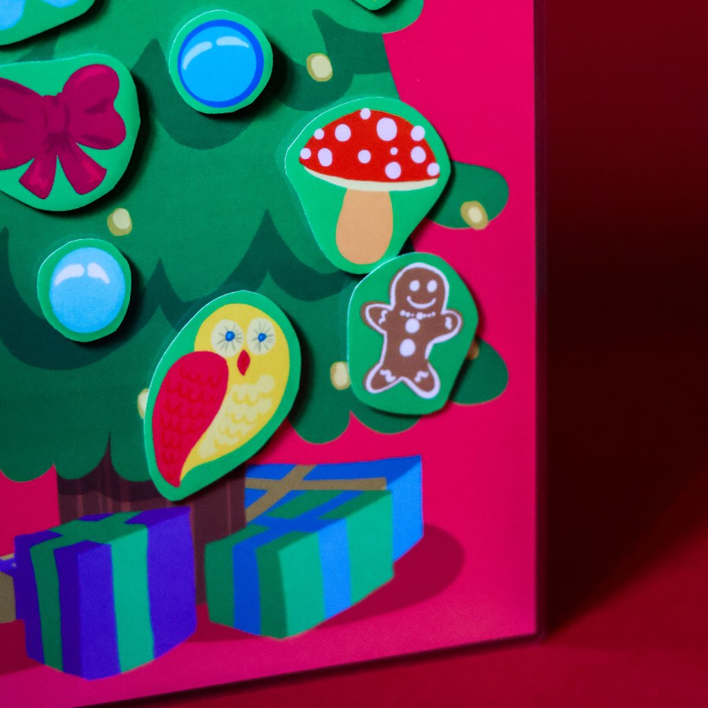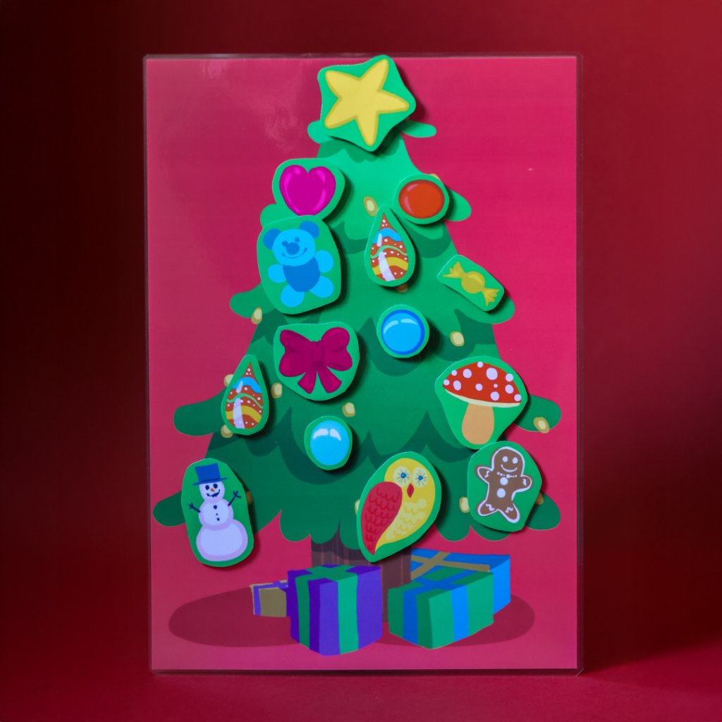 Laminovaná pomůcka nabízí dětem možnost ozdobit si vlastní vánoční stromeček.