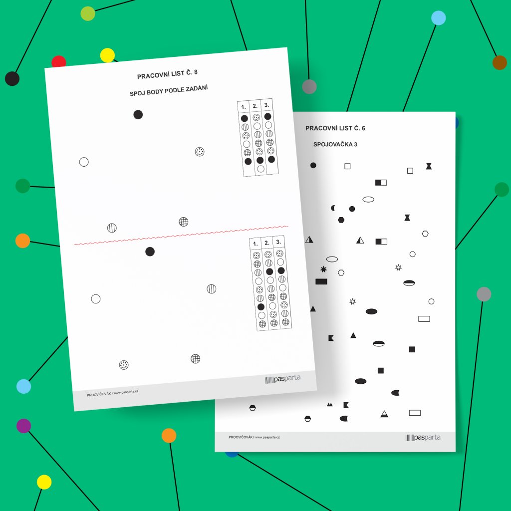 Materiál obsahuje pracovní listy: Dvojice tvarů, Spoj body podle zadání, Co je to?, Geometrické tvary, Spojovačka + další varianty.